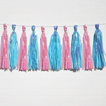 Holographic Pink & Holographic Blue Tassel Garland Set 10 Piece