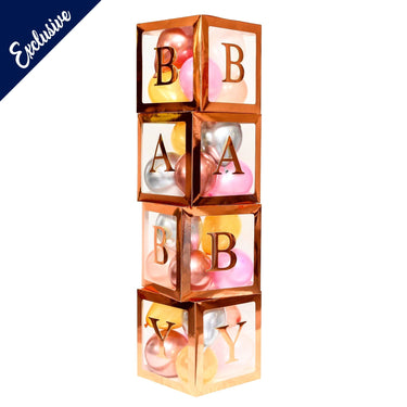 1 x Beautiful Chrome Metallic Rose Gold 5 inch balloon set the perfect size for the boxes - this set has enough balloons to decorate all 4 of the boxes.