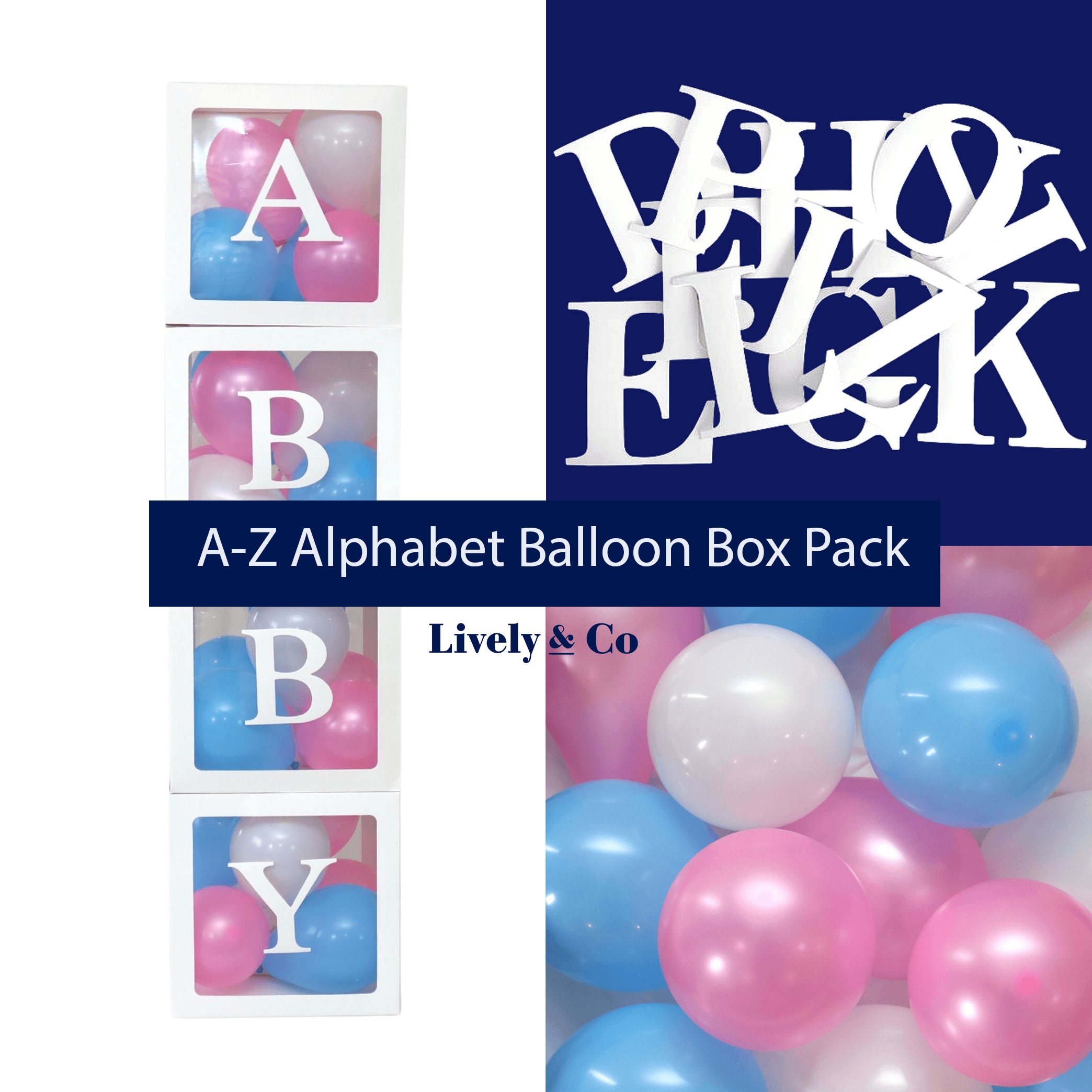 A-Z Alphabet Balloon Box Pack Pink & Blue $27.45 NZD /