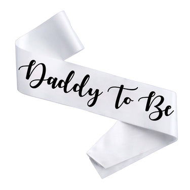 Party made easy. Celebrate the dad-to-be with this classic Daddy To Be sash — a simple, stylish accessory for baby showers, baby announcements or maternity celebrations. Made from smooth white satin with black lettering, it’s comfortable to wear and designed to suit modern and classic baby shower themes.