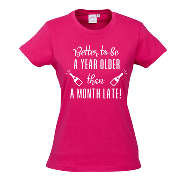 BETTER TO BE A YEAR OLDER THAN A MONTH LATE! T SHIRT