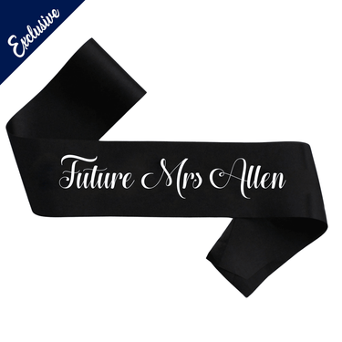 Party in style with a personalised black satin sash, sewn at the bottom so no messy pins!