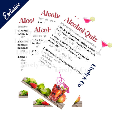 - Give each guest a printed copy of the game questions. They guess the correct answers to our alcohol themed questions. Read out the answers at the end and the person with the most correct is the winner.