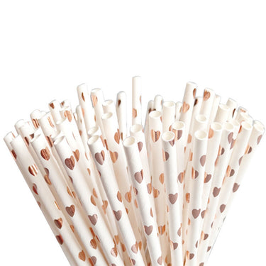 Pretty metallic rose gold hearts paper party straw packs - perfect for any party occasion.